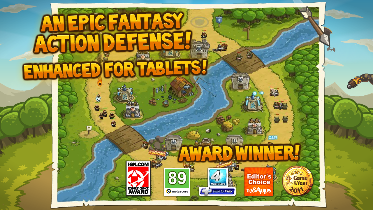 The acclaimed action fantasy defense game is now available on Android for Phones and Tablets! Get ready for an epic journey to defend your kingdom against hordes of orcs, trolls, evil wizards and other nasty fiends using a vast arsenal of towers and spells at your command!